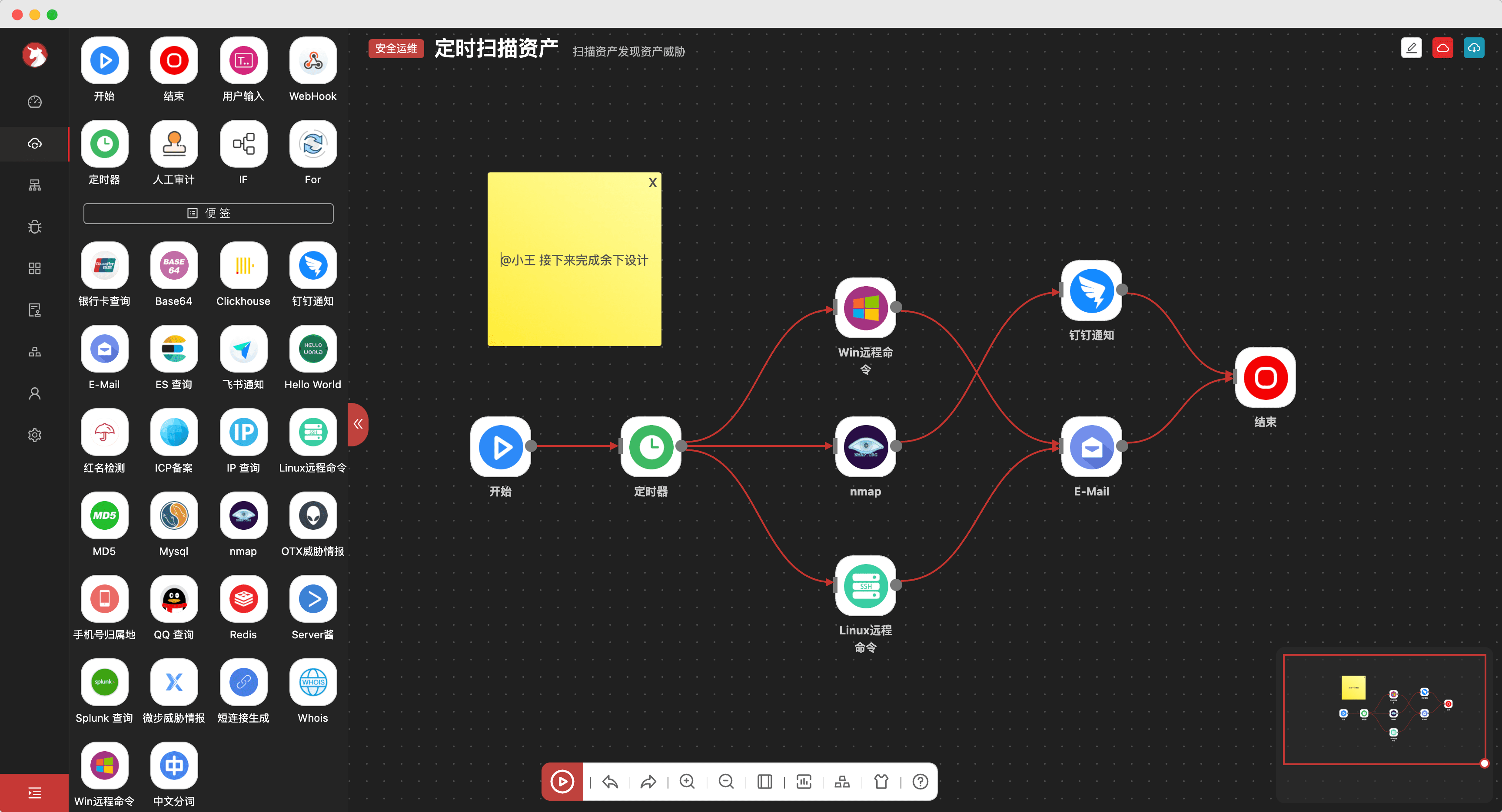 面向企业安全与运维设计的低代码自动化平台,可以让团队降低人工成本,提升工作效率。可以把代码图形化、可视化、可编排。让不同的系统,不同的组件通过 APP 进行封装形成平台能力,利用 Trigger 去自动化执行你构思的剧本。